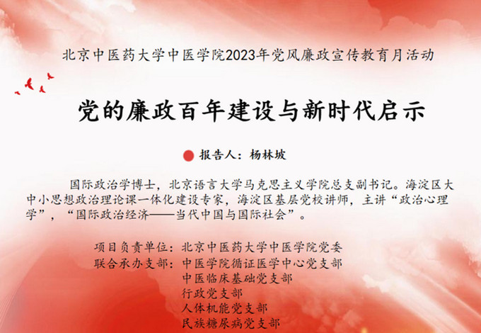 全体教师党员观看以反腐为主题的电影《坚如磐石》,邀请北京语言大学马克思主义学院杨林坡书记作题为《党的廉政百年建设与新时代启示》的报告,参观了明镜昭廉明代反贪尚廉历史文化园,在增强反腐意识的同时提高师德师风建设,为全院教师党员上好“反腐”的重要一课。