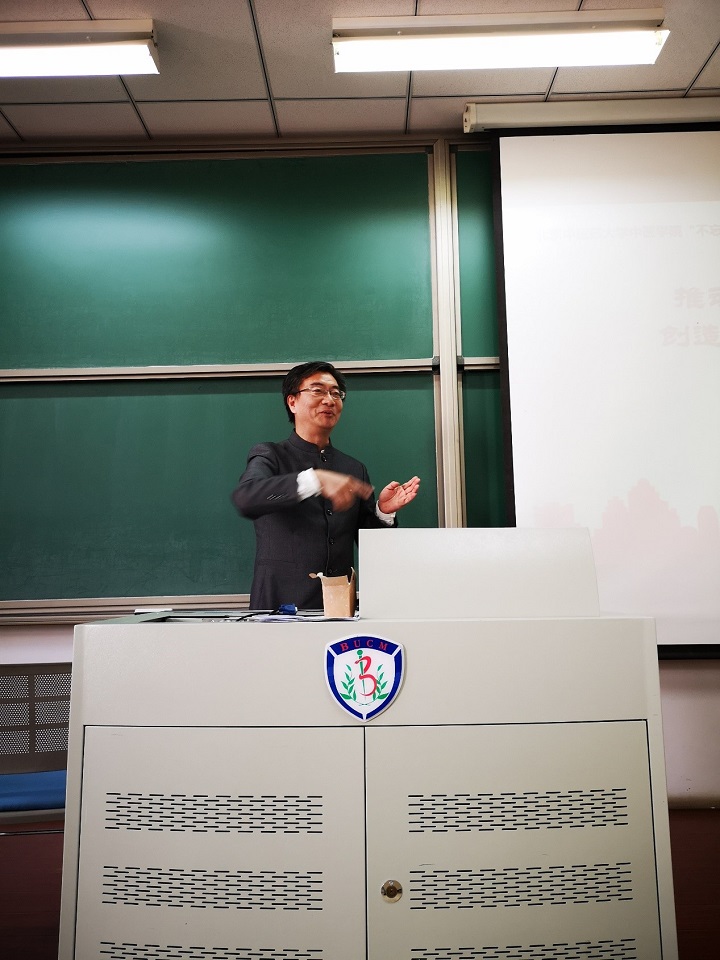 座谈会后,学院党委委员、院长李峰为学院全体师生党员作了专题为《不忘初心、牢记使命——推动中华优秀传统文化创造性转化、创新性发展》的专题党课。李院长从中华优秀传统文化与我们的初心和使命有什么关系;中国共产党人在学习马克思主义的同时,如何看待中华优秀传统文化;在现代科技发展迅猛的今天,如何看待中华优秀传统文化;如何科学的对待传统文化,这四个问题切入,联系主题相关资料,引经据典,引领大家进行了深入学习。李院长在党课上分享了他自己平日的学习体会,他认为中华优秀传统文化对于不忘初心的意义是坚定文化自信,政治文化之基。中华优秀传统文化的传承之法是要古为今用,有鉴别地加以对待、要有扬弃地予以继承;要融通现实,要创新性转化、创新性发展;要讲清楚,摸清优秀传统文化渊源脉络走向,了解优秀传统文化创造价值的特色;要中外并蓄,从本国本民族实际出发,取长补短择善而从。最后,李峰院长表示,只有在中国共产党领导下实现中华民族的伟大复兴,才能创造中华文化新的辉煌。在中国特色社会主义文化建设中,中华文化正在续写更加壮丽的篇章。
