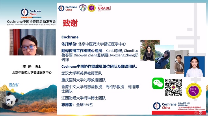 如今Cochrane中国协作网正式成立,作为成员单位,更将发挥自身优势,团结其他医学机构,积极践行中医药循证医学的发展和知识转化,为应对新冠疫情和改善人类健康而努力。