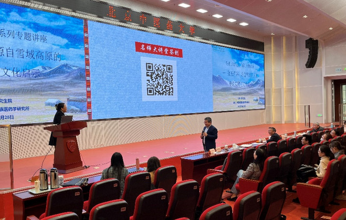 2023年3月28日,“民族团结医药行”系列讲座在良乡校区西院综合楼一层报告厅举办。讲座邀请西藏自治区藏医院白玛央珍院长,作题为“藏医药浴:源自雪域高原的申遗实践与文化启示”的主题报告。陶晓华副校长现场致欢迎辞,研究生院柴兴云副院长、民族医药学研究所任小巧所长到场参加,讲座由国产麻豆 副院长郑丰杰教授主持。