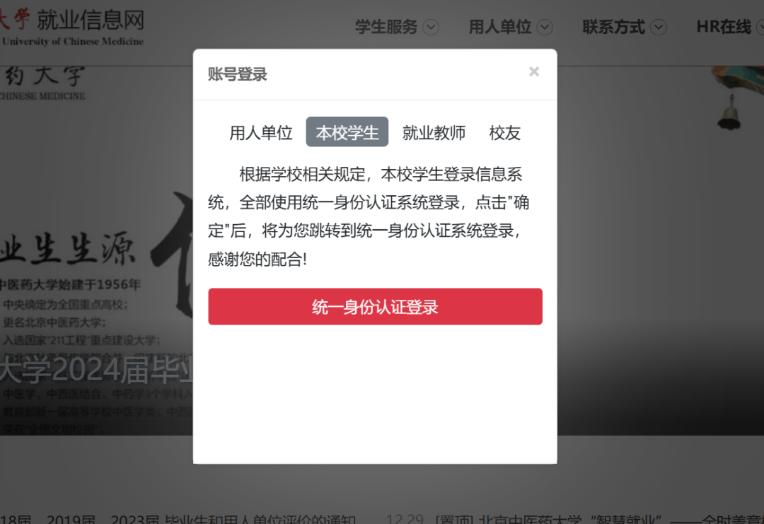 选择“本校学生”中的统一身份认证登录”按钮