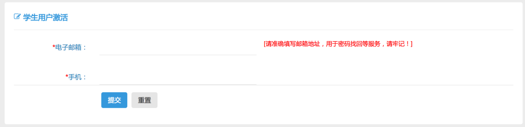 首次登录需要激活账号,输入常用邮箱和手机号