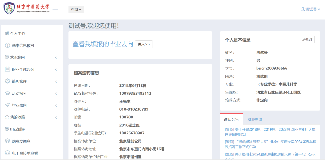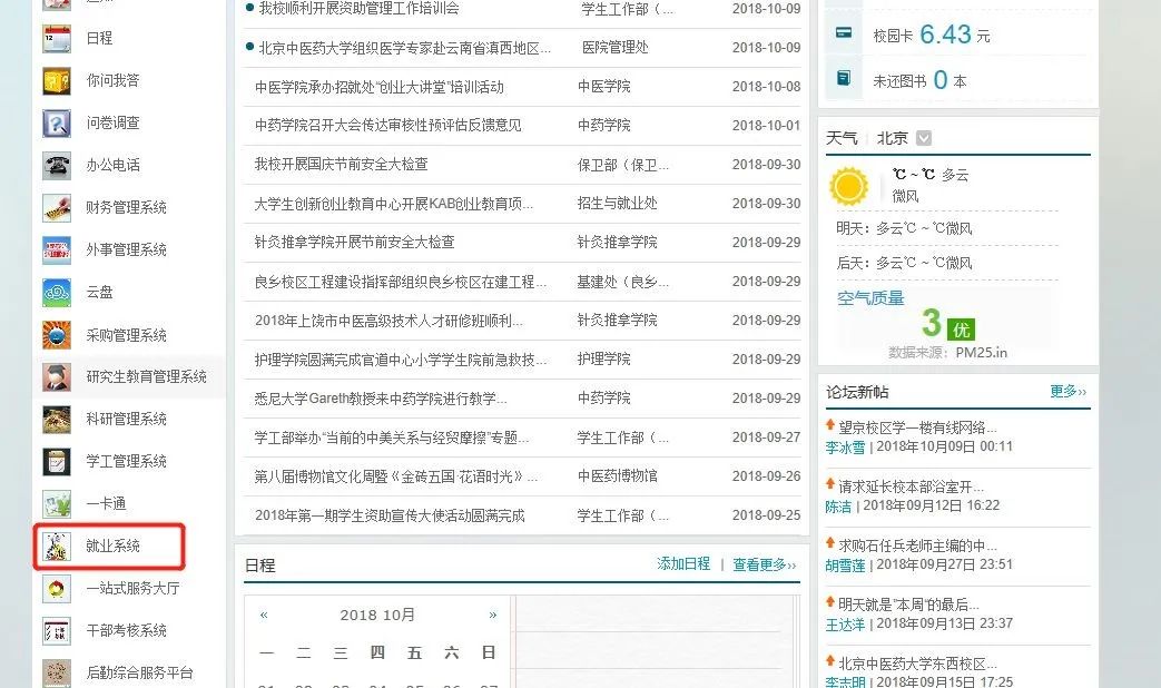 2) 可通过“数字北中医”中的“就业系统”进入