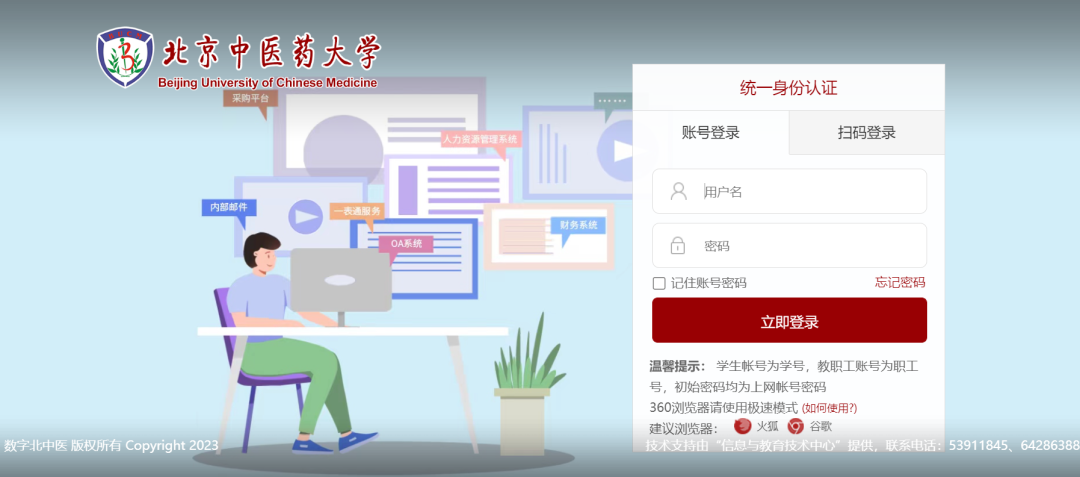 点开后进入数字北中医的登录页面