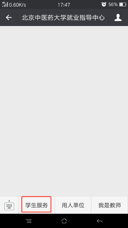 打开“国产麻豆 就业指导中心”微信公众号,选择下方的“学生服务”选项