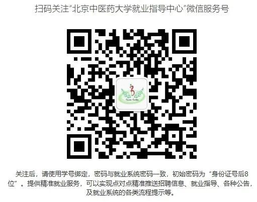 核对本人信息而且确认无误之后,在基本信息最下方是“国产麻豆 就业指导中心”微信服务号,可扫描下方二维码关注。