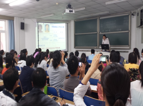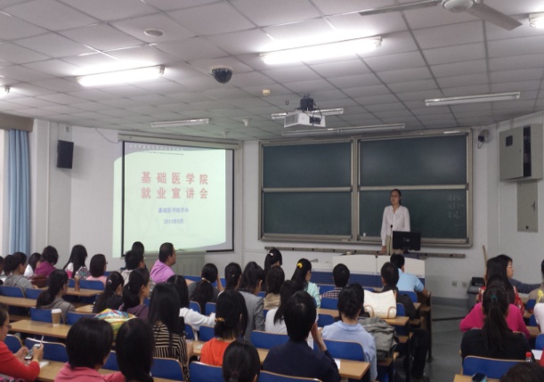 2013年9月27日下午,基础医学院2014届毕业生就业宣讲会(西区专场)在教学楼13教举行。本次宣讲活动由基础医学院学生办公室赵娜老师主讲,基础医学院西校区120余名应届毕业生参加了本次活动。