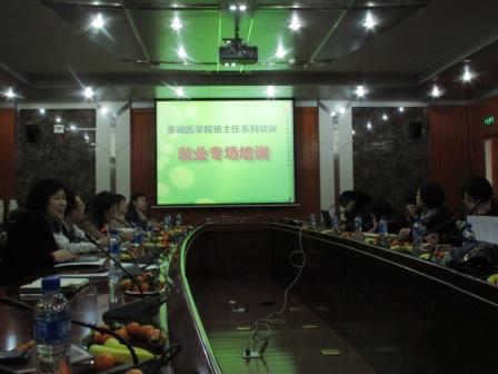 为全面提高辅导员班主任工作的理论水平,提升班主任的角色意识,责任意识,进而有效提高工作水平,基础医学院自2011年12月中旬开始,先后进行了以党建、奖贷助勤、心理及安全教育、就业为主题的三次班主任专场培训,取得了良好的效果。