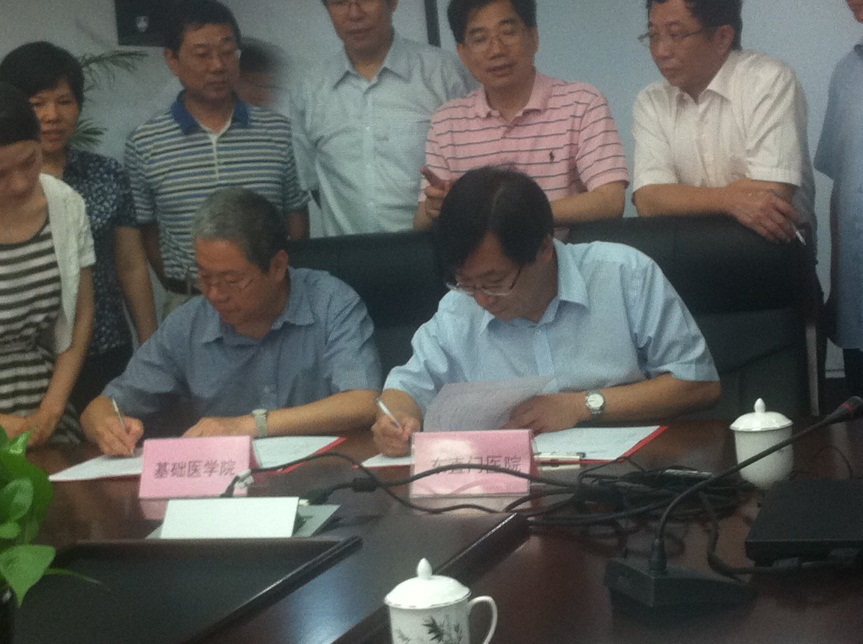 校长徐安龙见证了签约仪式,对“一流的医院、一流的基础医学院、一流中药学院”的合作模式深感欣慰,徐校长说,这是他来到北中医一直想要推动的协同创新工程,对于三方的合作,学校将在政策上基于经费、资金等支持,希望基础医学院和东直门医院进行顶层设计,建立一个长期的科研合作平台,共同展开科研成果的培育与人才质量的提高。要围绕临床,围绕中医,要出顶尖项目和顶尖人才,将以中医为主的科研工作落到实处。最后,徐校长以“兄弟齐心、其利断金、精诚合作”勉励三方。