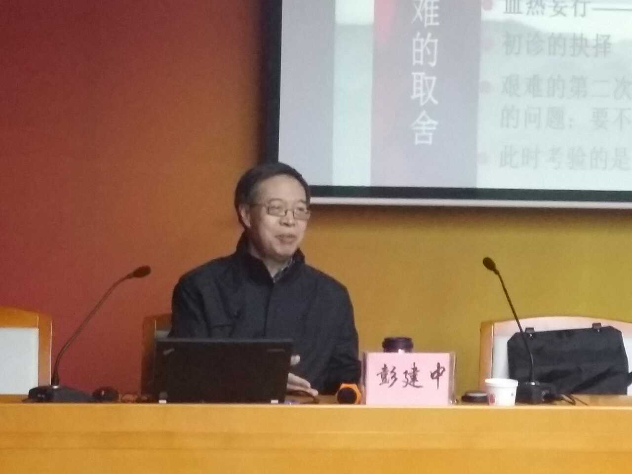 教授彭建中老师为基础医学院师生做了关于“中医理论与临床思辨”的讲座,旨在指导广大师生运用中医理论进行临床思辨的能力,讲座由副院长贺娟主持。