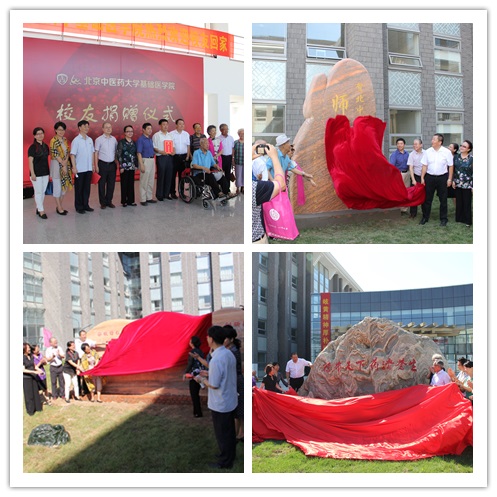 随后,首届校友代表石国壁先生发言,作为1956建校的首届学生,石老回忆了当时入学时艰苦的学校条件,对比如今美丽而现代化的良乡新校区,石老感慨学校的发展与进步,并为此感到光荣与喜悦。时值教师节前夕,石老回忆说,师恩难忘,老师对学生的成长成才起到重要的引导作用。1956级校友为母校捐赠了一块观景石,上书“难忘师恩”四个大字,希望大家也可以铭记师恩,同时也表达对老师们的敬意与鼓励。