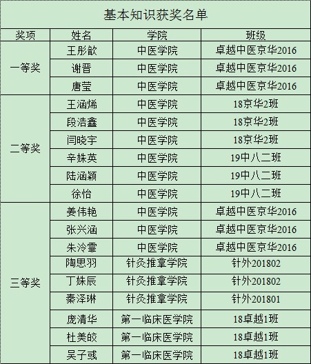 书生意气,挥斥方遒。半决赛后,各有6支队伍脱颖而出,得以参加决赛,角逐最终的冠军席位。“中医学基本理论与知识竞赛”,由中基教研室许筱颖教授、中诊教研室王天芳教授、中药教研室钟赣生教授、方剂教研室高琳教授担任评委;“中医四大经典知识竞赛”由内经教研室禄颖副教授、伤寒教研室刘敏教授、金匮教研室贾春华教授、温病教研室于河教授担任评委。在经过“牛刀小试”、“团结就是力量”、“中医猜词秀”、“眼疾手快”、“险中求胜”五个环节的精彩较量后,来自国产麻豆 的16级卓越中医京华班同时获得“中医学基本理论与知识竞赛”和“中医四大经典知识竞赛”的冠军。